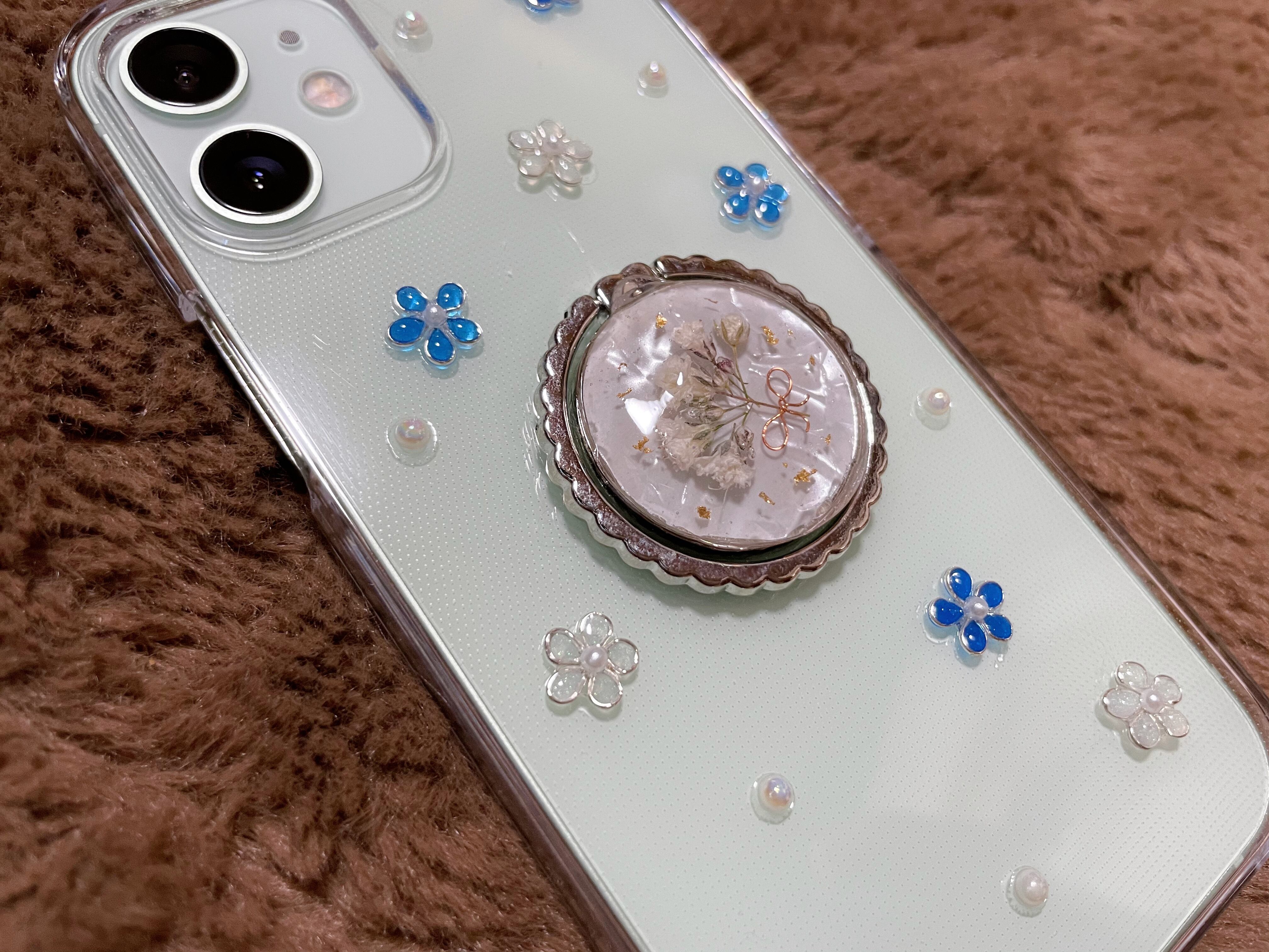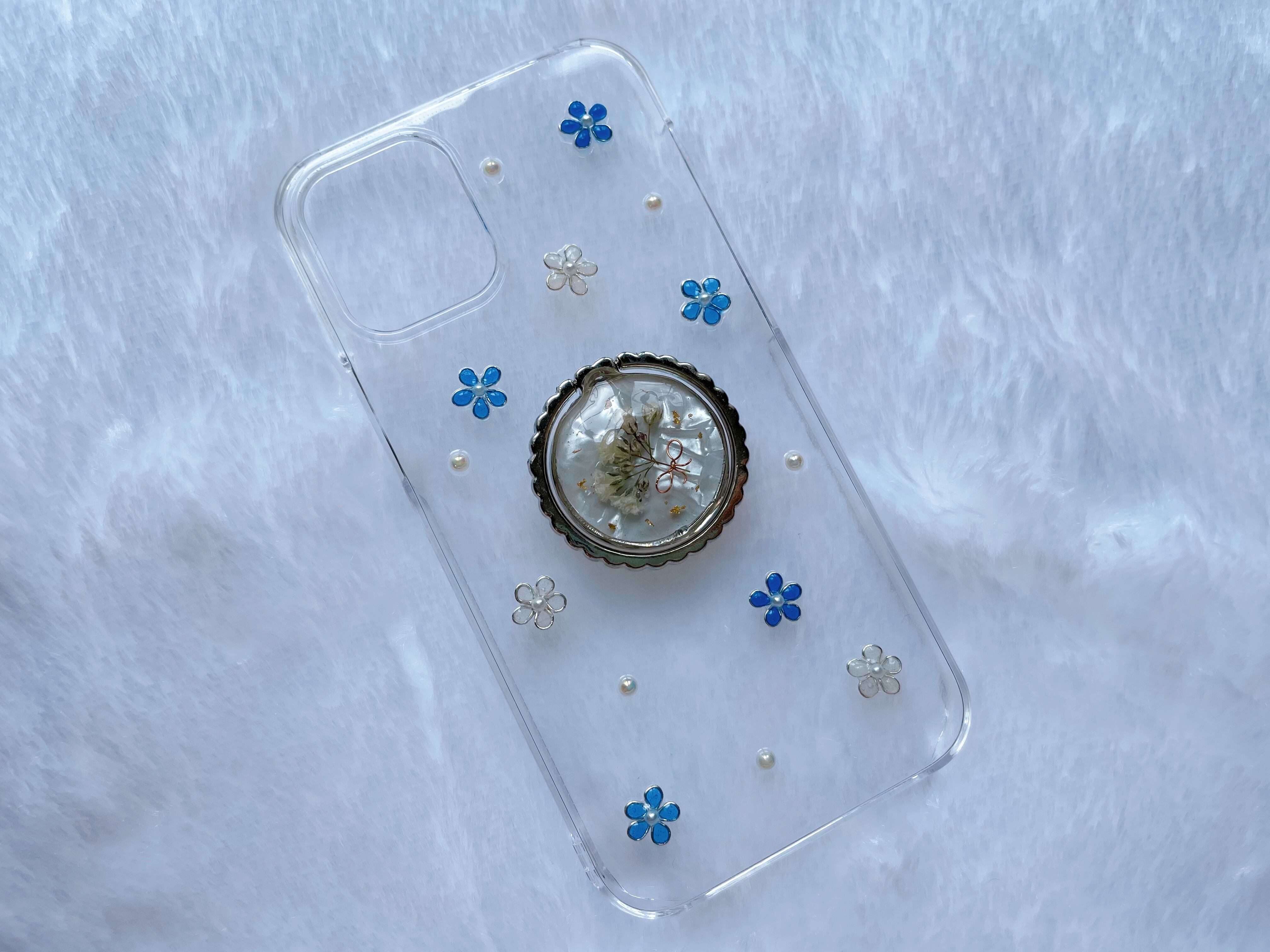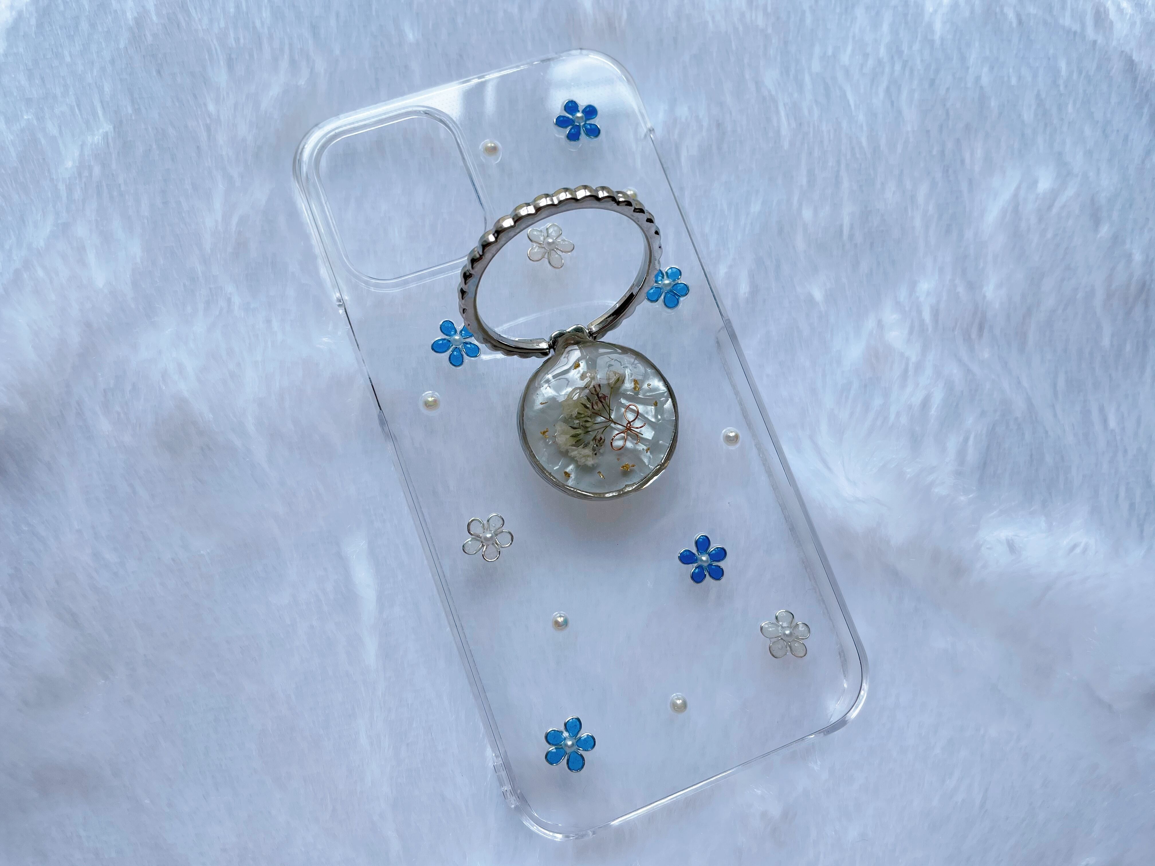かすみ草のスマホケース②シルバー
