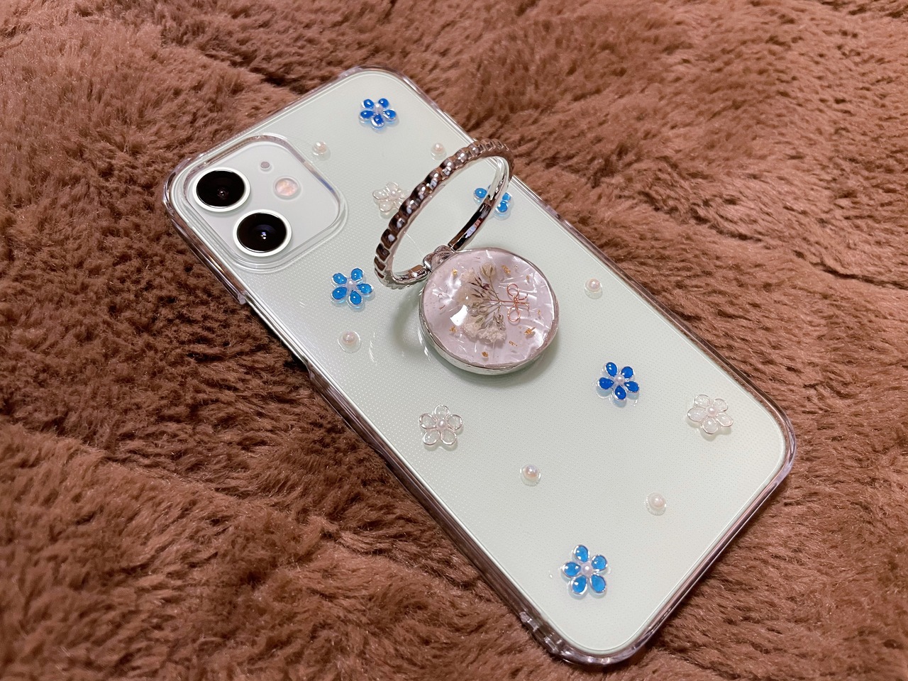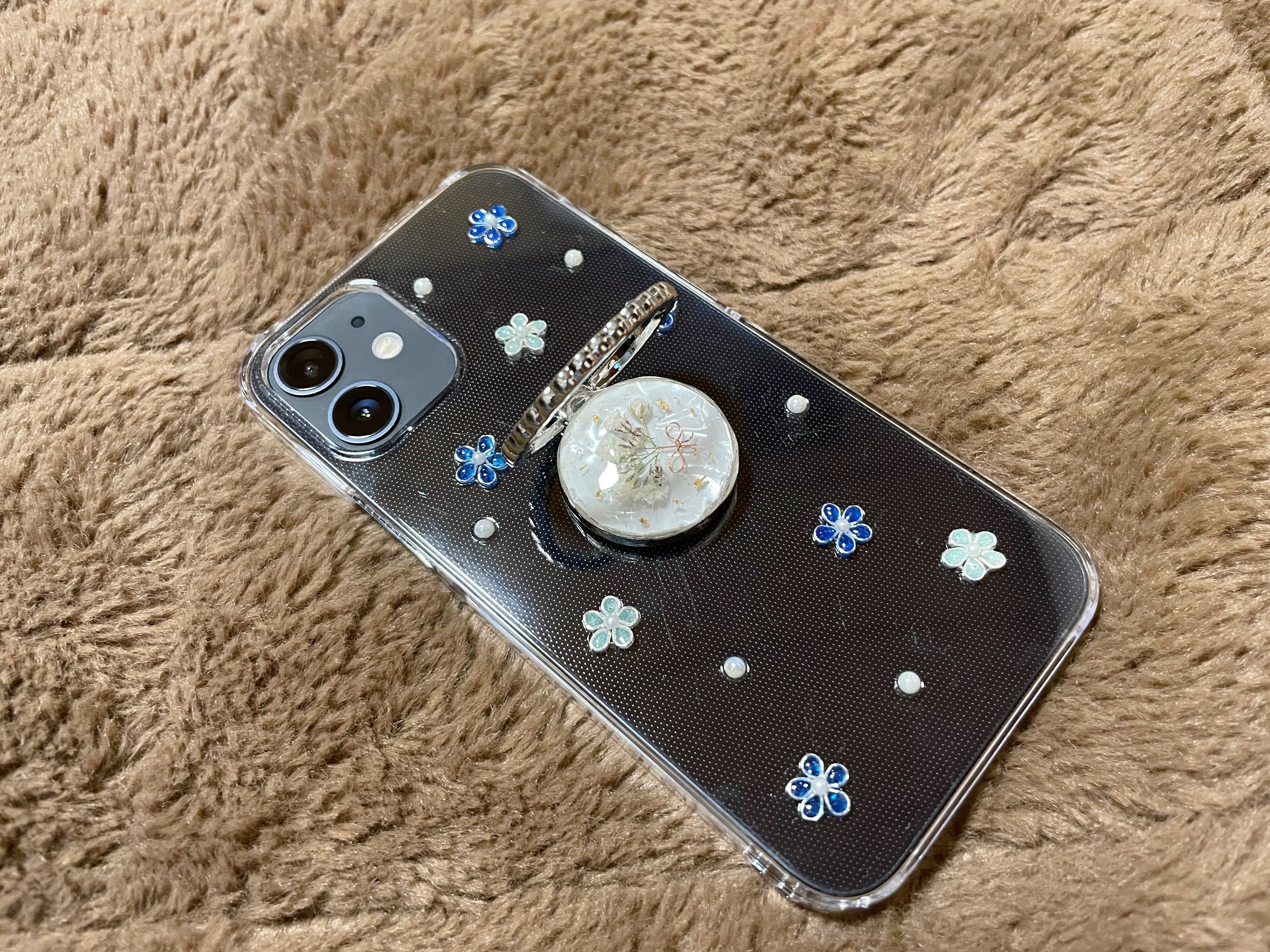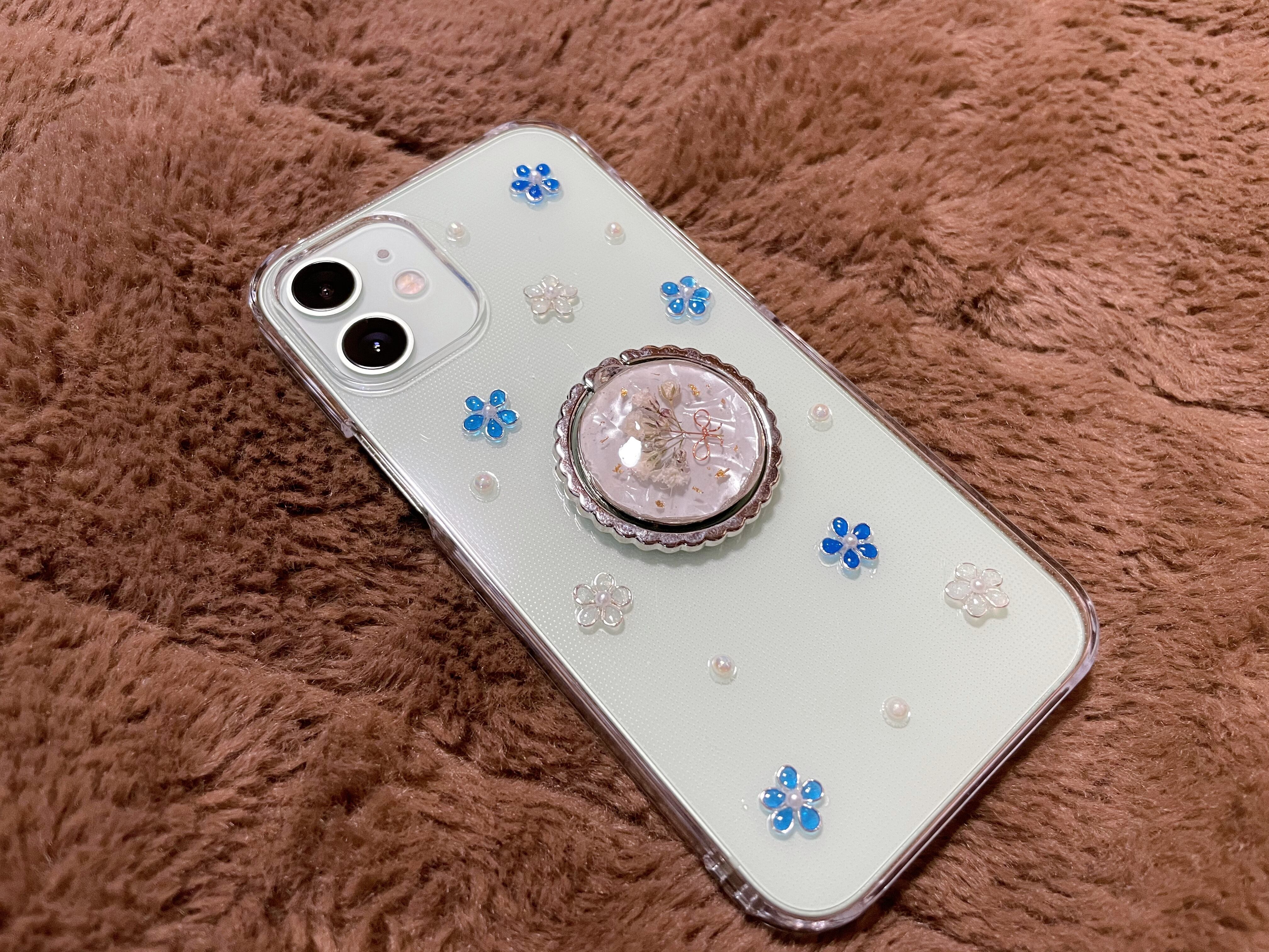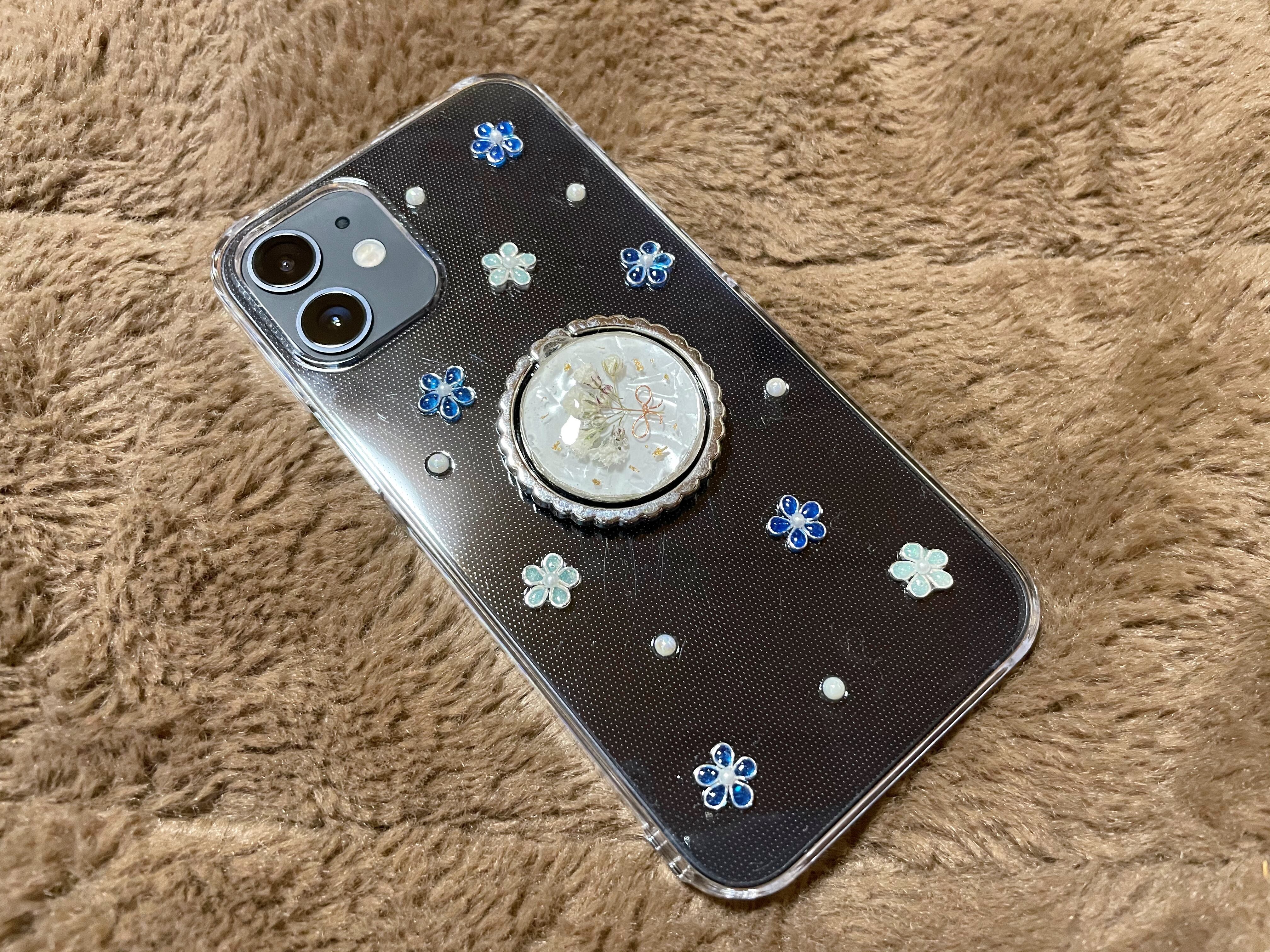 かすみ草のスマホケース②シルバー