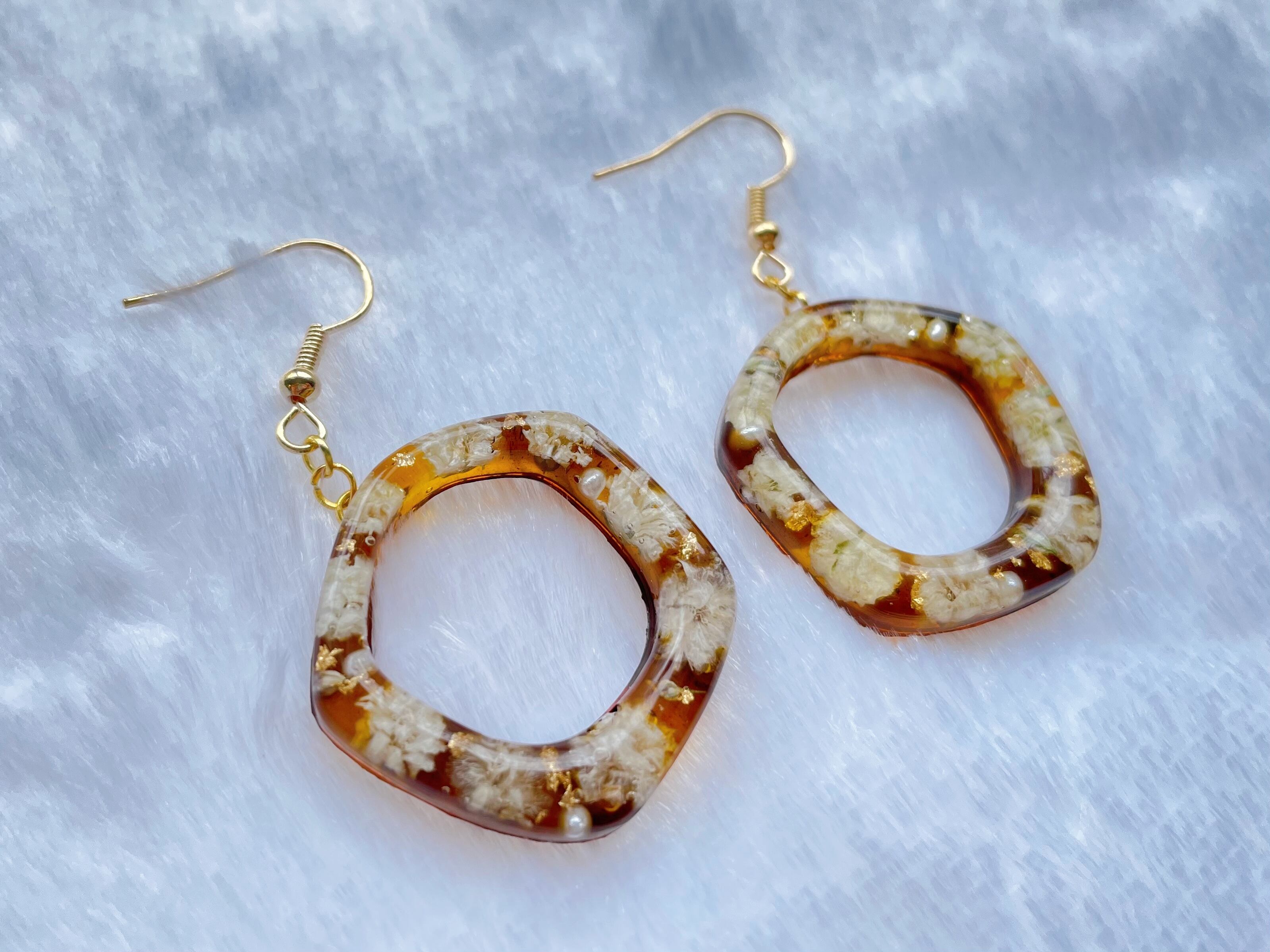 本物のかすみ草を閉じ込めた大ぶりのピアスです。