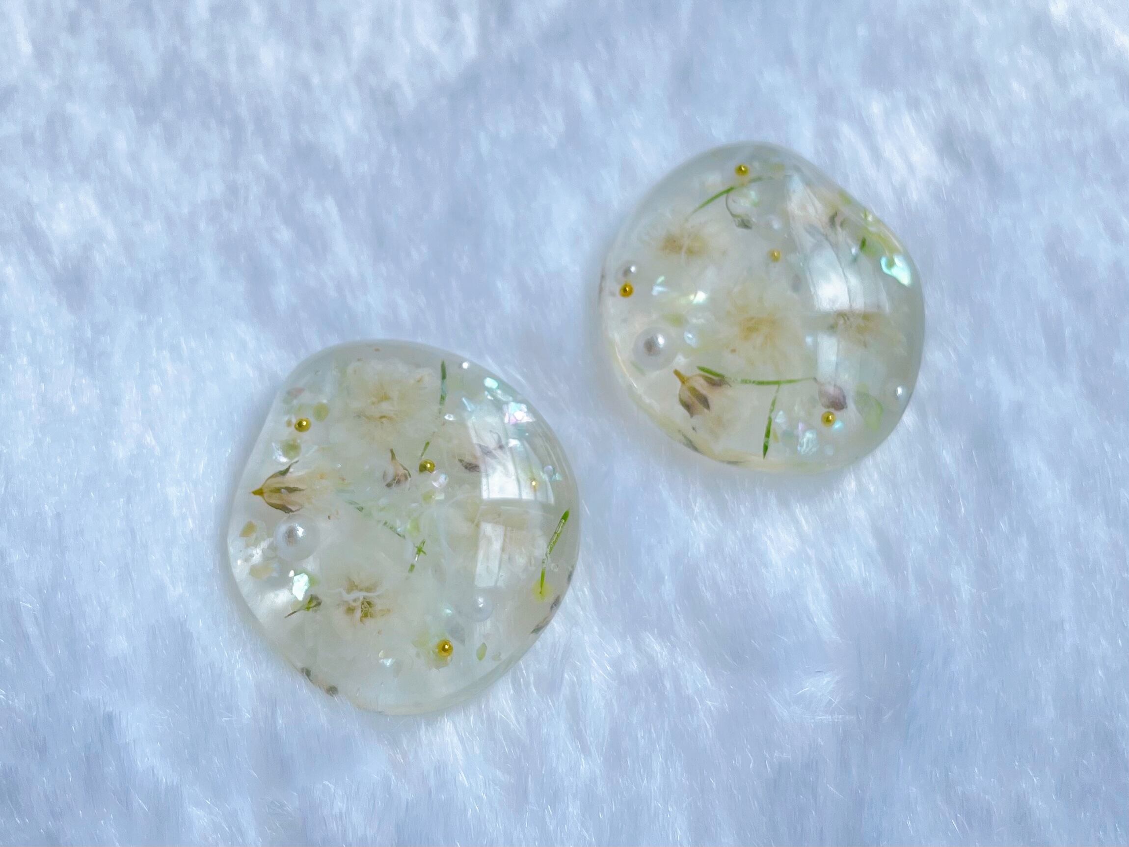 本物のかすみ草とカラフルなシェルを閉じ込めた、